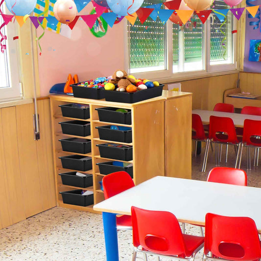 Qunclay 16 Pcs Flat Storage Tray Organizer Bin Letter Size Paper Trays for Classroom Art Activity Plastic Stackable File Paper Organizer for School Office Teacher Book Organization, Black