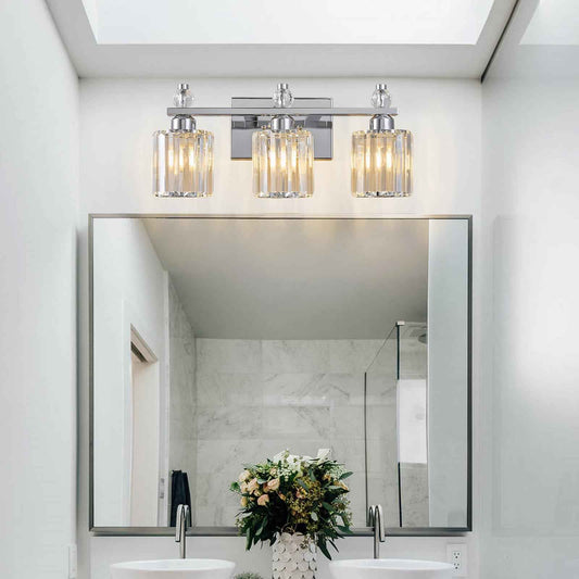 FDPBY Bathroom Vanity Lights 3-Light Chrome Modern Crystal Vanity Light Fixtures Over Mirror Crystal Bathroom Vanity Lighting Fixtures