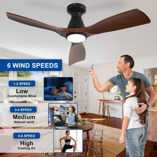 DLLT 42-Inch Ceiling Fans with Lights: Flush Mount Ceiling Fan 3 Blades for Indoor Outdoor - Dimmable Ceiling Fan with Remote APP Control Noiseless DC Motor for Low Profile Bedroom