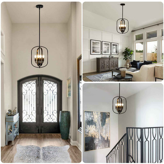 MIAYBPH Black Chandelier Light Fixture, 4-Light Dining Room Chandelier Over Table Farmhouse Rustic Small Entryway Chandeliers Hanging Island Pendant Lights for Kitchen Entryway Foyer Living Room