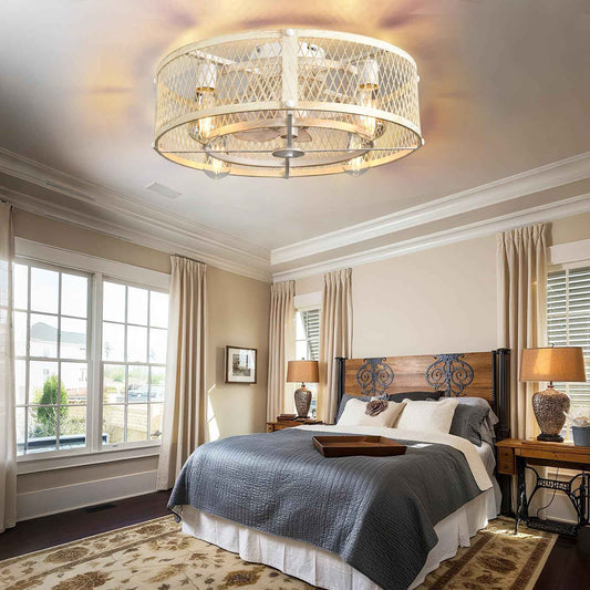 Depuley Cage Ceiling Fan with Light: Cement Flush Mount Ceiling Fans with Remote - 20in Rubbed Ceiling Fans Light Fixture for Dining Room - Rustic Reversible Farmhouse Fandelier for Bedroom Kitchen