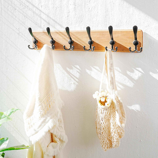 Dseap Coat Rack Wall Mounted - 24" Long 6 Tri Hooks, Heavy Duty Wooden Wall Coat Hanger Coat Hook for Clothes Hat Jacket Clothing, Weathered Brown and Black, Pack of 2