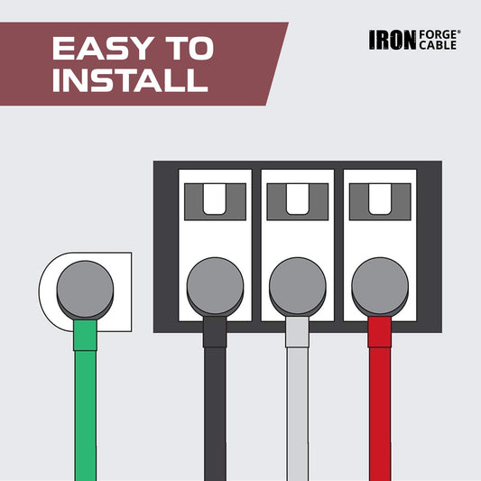 Iron Forge Cable 4 Prong Black Range Power Cord 12 ft - 50 Amp RV Extension Cord - Heavy Duty 6/8 AWG - NEMA 14-50P Flat Plug 4 Wire EV Cord