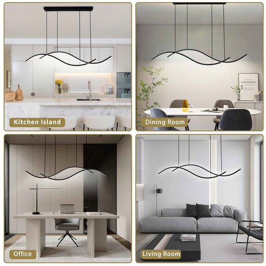 Modern Led Pendant Light, Dimmable Black Led Chandelier for Dining Room Light Fixture Over Table Creative Wave Pendant Light for Kitchen Island, Dining Room, Bedroom