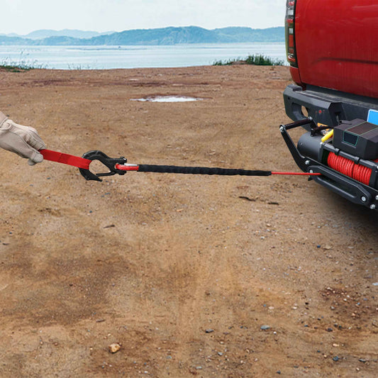 XPV 3/8" x 100ft Synthetic Winch Rope 23,809lbs Dyneema Winch Line Cable Rope with Hook and Sleeve Protection Red