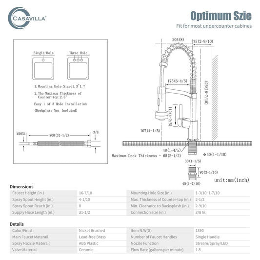 Casavilla Black Kitchen Faucet with Soap Dispenser, Faucet with Light, Faucet for Camper Farmhouse RV Kitchen Sink, Single Handle Stainless Steel Kitchen Sink Faucets with Pull Down Sprayer