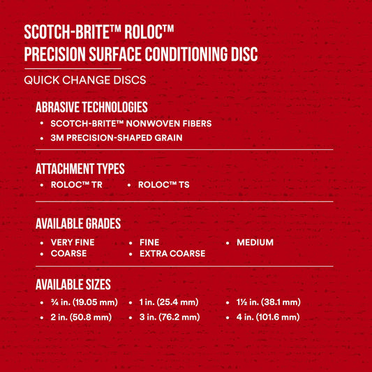 Scotch-Brite Precision Surface Conditioning Disc, Roloc TR, Very Fine, Ceramic, Nonwoven Fiber, Easy Change, 3 in, 25/Inner, 100/Case, Dispenser Pack