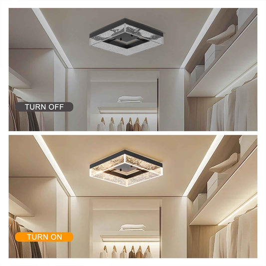 Qcyuui LED Flush Mount Ceiling Light, 11.81in 20W Modern Ceiling Light with Clear Bubble Acrylic,Square LED Ceiling Lamp for Kitchen Hallway Closet Living Room Bedroom, Black, 3000K Dimmable