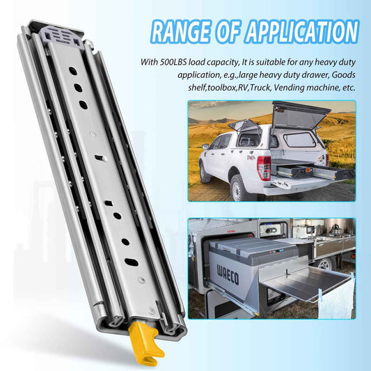 VAGUDE with Lock Heavy Duty Drawer Slides 12 14 16 18 20 22 24 26 28 30 32 34 36 40 44 48 52 56 60 Inch 470 Lbs Side Mount Full Extension Ball Bearing Rails Rail Tool Box Runner-W:76mm, 20 Inch