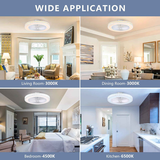 YKLITG Bladeless Ceiling Fan with Lights and Remote, 19 Inch LED Low Profile Fandelier Ceiling Fans with Metal Frame, White Flush Mount Light Fixtures for Kids Bedroom, Kitchen, Living Room