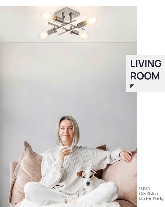 Eidonta Industrial 4-Light Semi Flush Mount Ceiling Light Fixture, 3 Pack Modern Brushed Nickel Chandelier Lighting, Farmhouse Sputnik Ceiling Lamp, E26 Base Pendant Lamps
