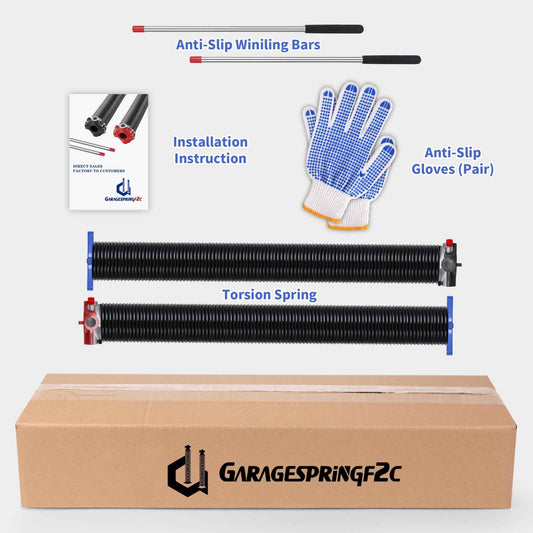 GarageSpringF2C One Pair of 2" Garage Door Torsion Springs, Electrophoresis Coated Garage Spring Set for Replacement with Non-Slip Winding Bars - Size 234x2x27"