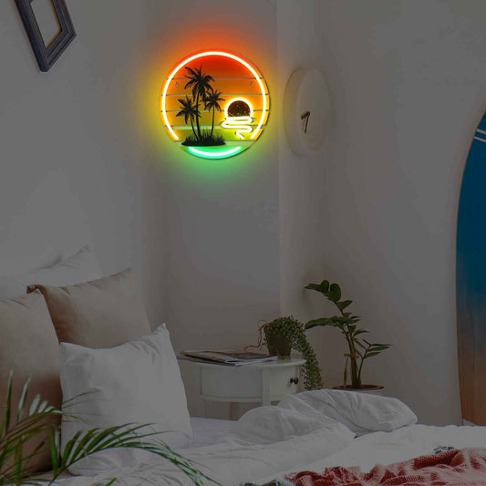 Glooglitter Tropical Neon Sign 11.8 Inch Palm Tree Sunset Neon Light for Wall Decor Colorful LED Light up Bar Signs for Bedroom Bar Beach Theme Restaurant Party Decor Gift