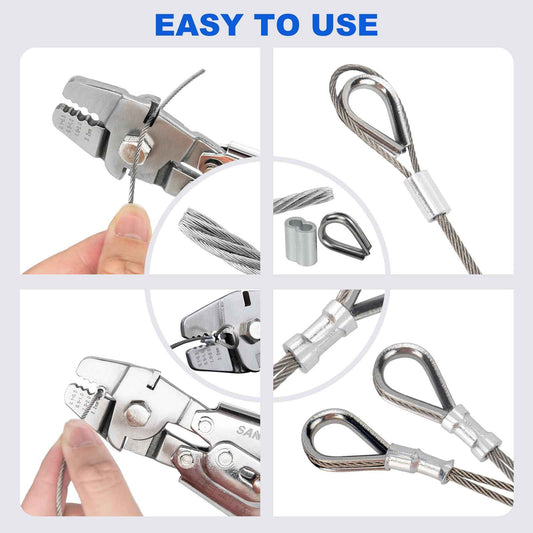 Sanuke Wire Rope Crimping Swaging Tool Cable Crimps up to 2.2mm(2/32inch) with 160pcs 4sizes Aluminum Double Barrel Ferrule Loop Sleeve and 10pcs Stainless Steel Thimble Assortment Kit