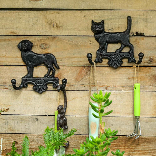 Sungmor Cast Iron Vintage Cat Wall Hooks, Decorative Wall Mounted Coat Hooks, Rustic Heavy Duty Double Hooks Cute Animal Key Hangers for Dog Leashes, Towels, Hats