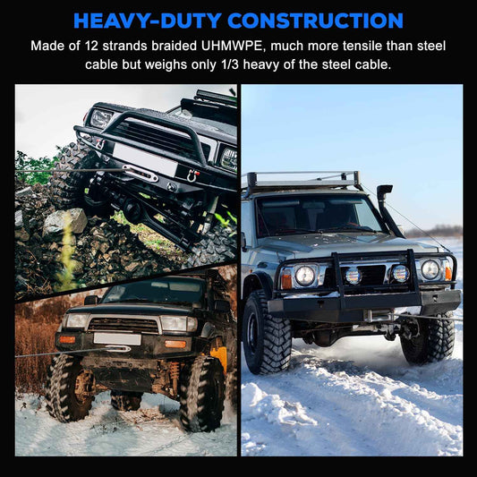 Synthetic Winch Rope Kit, 3/8" x 92ft 26500LBS Blue+Black Winch Cable with Protective Sleeve, Forged Winch Hook and Safety Pull Strap 4WD Off Road Vehicle SUV Truck