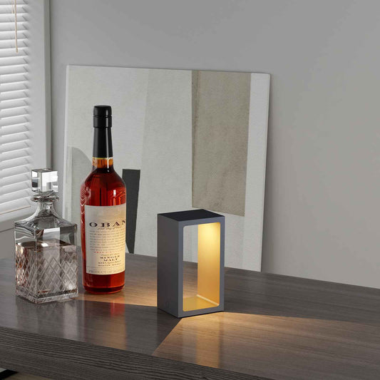 Minimalist Portable Cordless LED Desk Lamp, Adjustable Brightness Bedside Night Light, 7" High Aluminum Metal Table Lamp Battery Operated, Rechargeable Wireless Table Lamp for Home (Black + Gold)