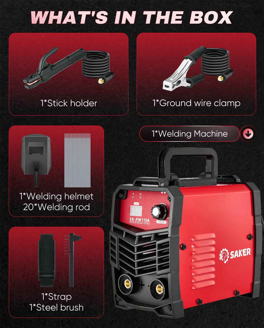 Saker Mini Stick Welder, 110V Portable Welding Machine, 20-130A Arc Welder with Smart LED Display, IGBT Inverter, Anti-Stick & Hot Start,Portable Stick Welder for Home & DIY