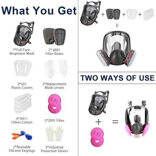 Reusable Full Face Respirator Mask,6800 Gas Mask with Filters 6001&2091, Bayonet Connection, Silicone Face Seal, Dust Masks for Painting£¬Sanding£¬Woodworking,Welding£¬Chemical Handling&Construction