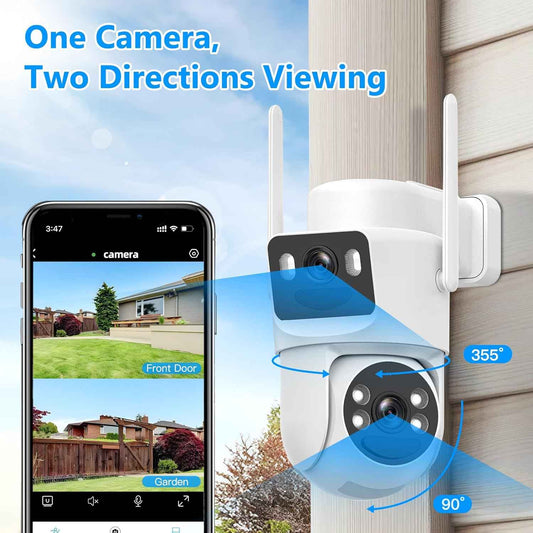 4K Wireless Solar Security Camera - Dual Lens Bullet & 360° PTZ Outdoor Surveillance