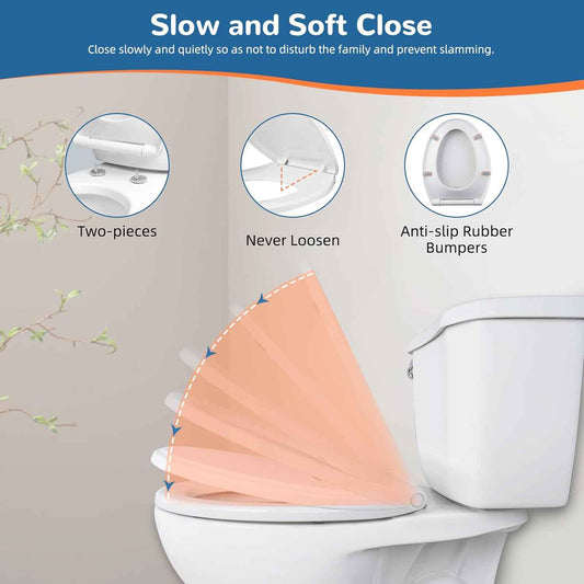 Soft Close Oval Toilet Seat Replacement with Non-Slip Bolts & Bumpers - Fits Kohler, American Standard, TOTO - Easy One-Click Release, White