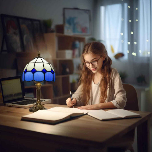 Tiffany Table Lamp - 8 Inch Antique Stained Glass, 3 Color Temperatures, Handcrafted for Bedroom & Living Room