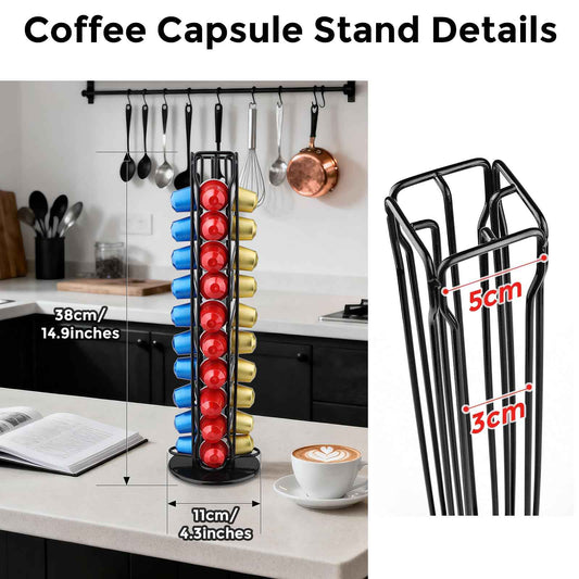 Coffee Pod Holder Compatible with Nespresso Original Capsule– Holds 40 Pods, 360° Rotating Coffee Carousel Storage, Space-Saving Countertop Organizer, Stylish Gift for Coffee Lovers (Black)
