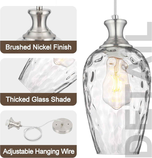 Brushed Nickel Glass Pendant Light Fixture - Modern 1-Light Hanging Lamp for Kitchen Island & Dining Room
