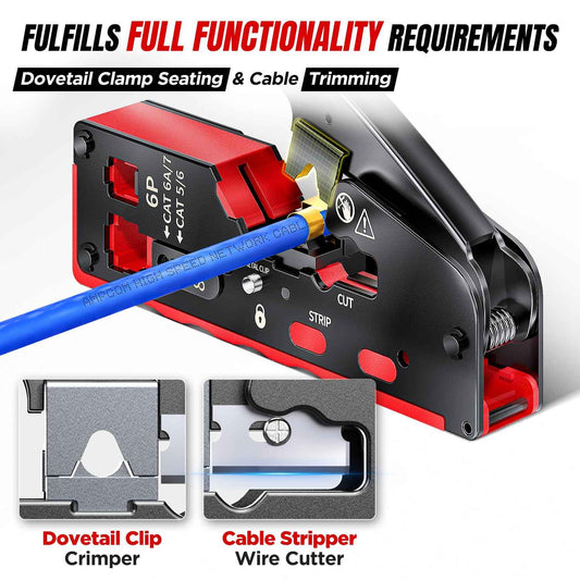 AMPCOM Pass Through RJ45 Crimp Tool, All-in-one Ethernet Crimper, Crimping for STP UTP RJ45/ RJ11 Cat8 Cat7 Cat6A Cat6 Cat5e Cat5 Connectors, AM-728RD