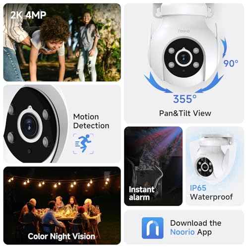Noorio 2K Security Camera Outdoor 360¡Æ Pan/Tilt, Two Way Talk Wired Outdoor Camera for Home Surveillance, 24/7 Recording, Color Night Vision, Cloud & SD Card Storage, Compatible with Alexa, 2.4G WiFi