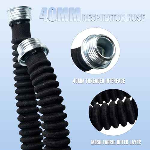 40mm Universal Thread Respirator Hose: 59-Inch Air Supply Hose - Flexible Tube Pipe Assembly - Compatible with Gas Mask Filter Respirators PAPR for Painting Sanding Welding - Black (1PCS)
