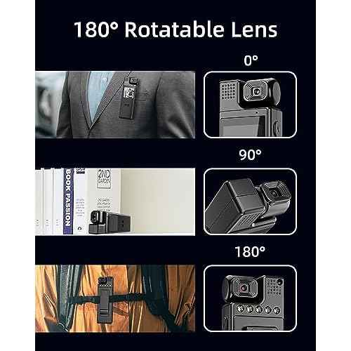 64G Body Camera with Video Recording, 1080P HD Police Body Worn Cam with 180¡Æ Rotatable Lens, Night Vision, and 6 Hours Battery Life for Daily Records, Delivery/Serving Jobs