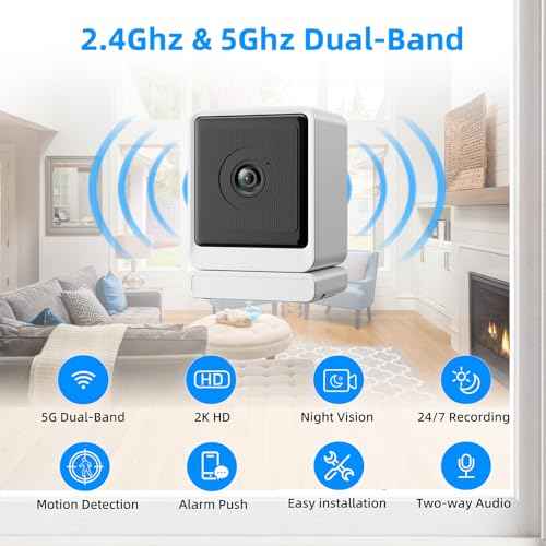 3MP 2K Window Security Camera,2.4G&5G WiFi Indoor Camera for Home with Color Night Vision,24/7 Recording,Motion Detection,Support SD Card and US Cloud Storage,Easy Install & Setup
