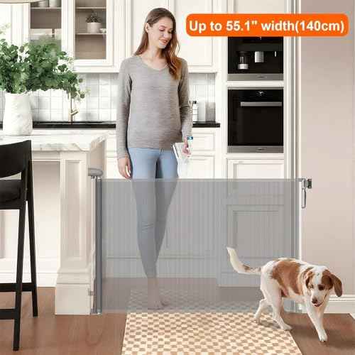 Retractable Safety gate, pet/Dog/cat Temporary Door, Baby Safety Temporary Door, mesh Soft Material, Expands to 55.1" Wide, Suitable for Stairs/corridors/Indoor/Outdoor(Grey,33.5"x55.1")