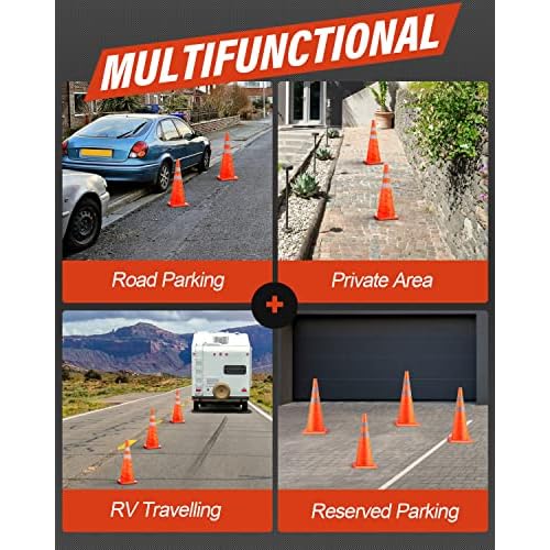 RoadHero 28 Inch 2 Pack Collapsible Traffic Safety Cones, Multi Purpose Pop-up Cones with Reflective Collar for Road Safety, Orange Cones for Driving Training, Parking Lots