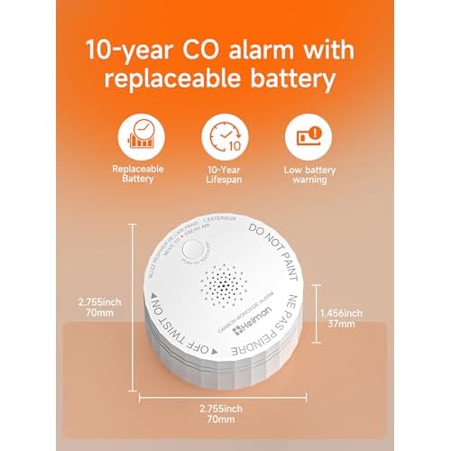 HEIMAN Smart Carbon Monoxide Detector, Wi-Fi CO Detector, ETL Listed Real-Time Push Notifications Battery Powered CO Alarm, Test-Reset Button, Portable Carbon Monoxide Alarm for Trave C1-W