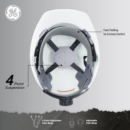 GE Cap Style Hard Hat, 4-Point Ratchet Suspension, Earmuff Slots, High Impact Resistant, Sweat-Wicking Sweatband, Meets ANSI Z89.1-2014, Comfortable and Durable - White, Class E (Non-Vented)