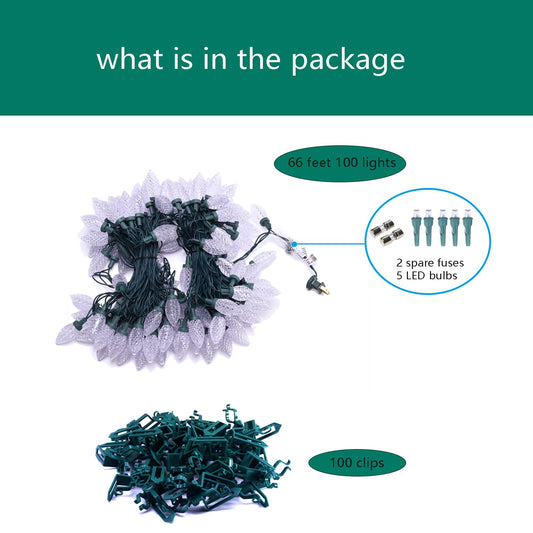 NIOSTA C9 LED Outdoor Christmas Lights,C9 String Lights with Quick Clips,for Xmas House Roof Gutter,Plug in & Connectable,66FT 100 Light,Cold White Faceted