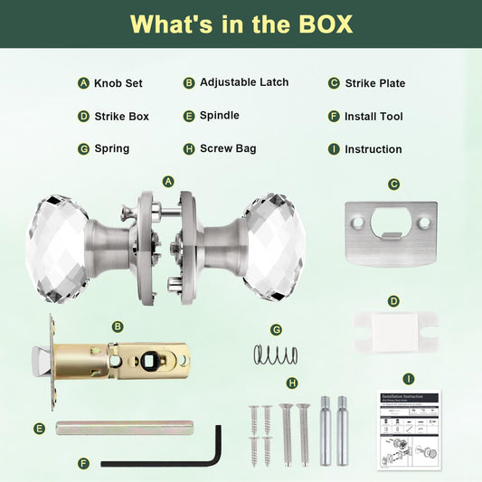 Lepushom 5 Pack Crystal Door Knobs Interior, Elegant Satin Nickel Glass Door Knobs, Keyless Privacy Door Locks for Bedrooms and Bathrooms