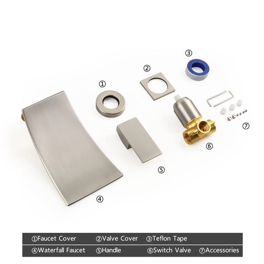 SKOWLL Wall Mount Bathroom Faucet, Brushed Nickel Bathtub Waterfall Sink Faucets, Single Handle Bathroom Lavatory Faucet