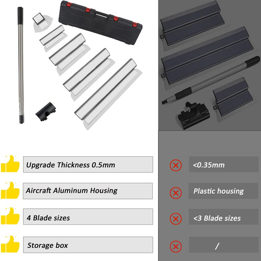 Drywall Skimming Blade Set, Drywall Tools with Stainless Steel 7",12",20",32" Skimming Blades and Extension Handle (35"-80"), High-Impact End Caps, Extruded Aluminum