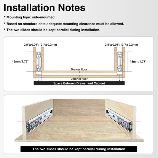 BAIDICE 10 Pair Full Extension Ball Bearing Drawer Slides 8 10 12 14 16 18 20 22 24 Inch 100 LB Load Capacity Side Mount File Cabinet Rails Dresser Metal Runner Trash Can Kitchen (22 inch, Sliver)