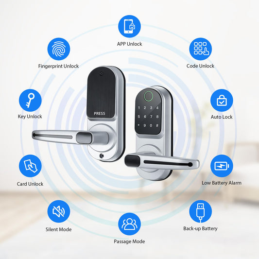 CATCHFACE Smart Fingerprint Lock - Keyless Entry Door Lock with Reversible Handle - Silver