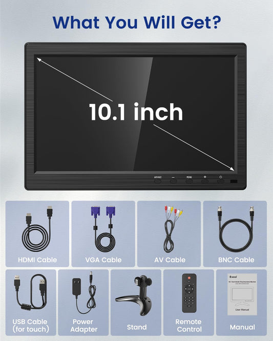 Eyoyo 10.1 inch Security Monitor 1366x768 Resolution, Small HDMI Monitor Supporting HDMI VGA AV BNC USB Input, Small Screen with Built-in Speakers for PC CCTV Camera NVR (EM101ADC)