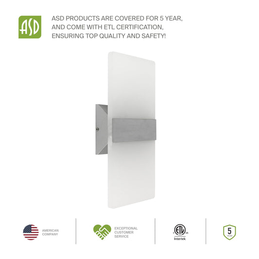 ASD 14 Inch LED Indoor Wall Sconce - Modern Interior 24W 120V 2700K-5000K Adjustable Dimmable Wall Mounted Light Fixtures, Acrylic Glass Wall Lights for Stairway, Hallway - ETL, Brushed Nickel 2 Pack