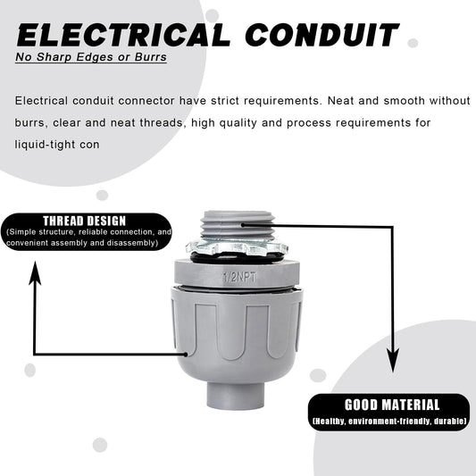 1/2 inch Liquid Tight Connector PVC Flexible Conduit Connector, UL Listed Conduit Fittings 100 Pack (50 pcs 180D/50pcs 90D)