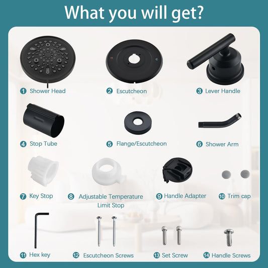 Replacement for Moen Shower Faucet Trim Kit, 9-Setting High Pressure Rain Showerhead, Shower Handle (Valve& Catridge Not Inclued), Matte Black