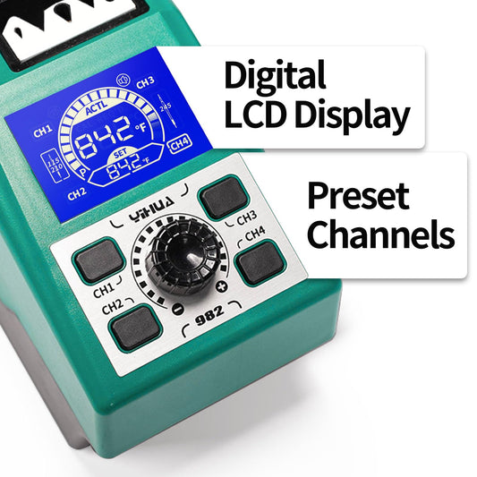 YIHUA 982 Precision Soldering Iron Station Kit with Digital LCD Display, 210 Soldering Tip Cartridge Compatible, Solder Wire Dispenser and, 4 Memory Channels, Auto Shutdown, Rapid Heating