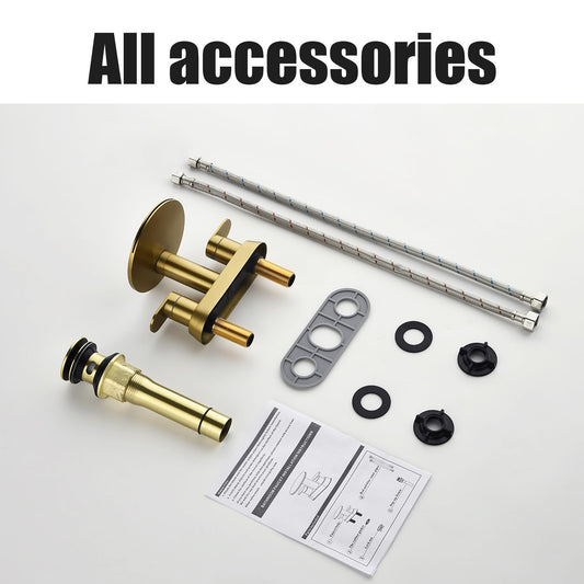 Brushed Gold Bathroom Sink Faucet 3 Hole,Waterfall Bathroom Faucet 4 Inch Centerset with Pop-Up Drain,2 Handle Stainless Steel Faucets for Bathroom Sink Vanity RV