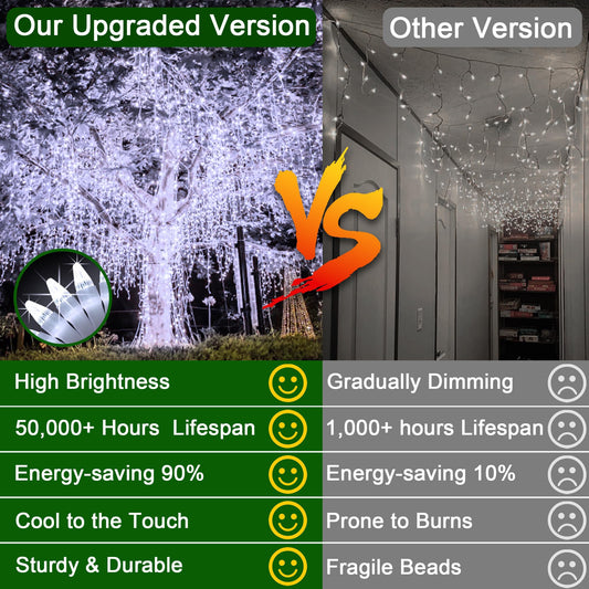 132FT 1332 LED Outdoor Christmas Lights - 296 Ice Drops, 12 Pro Modes with Timer Memory & Brightness, Waterproof Hanging Ice String Light for Holiday Wedding Garden Fence House Decor (Cool White)